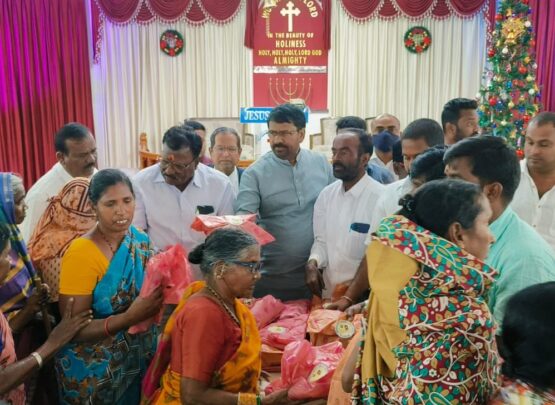 Ragidi Laxmareddy distributed sarees to all women as a Christmas gift under