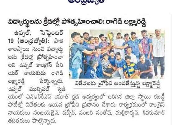 Ragidi Laxma Reddy, chairman of Madhura Charitable Trust organized the Kabaddi tournament