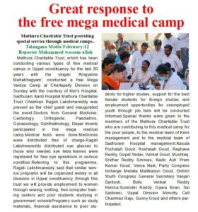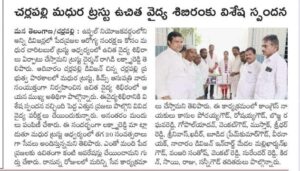 మధుర చారిటబుల్ ట్రస్ట్ మరియు కిమ్స్ హాస్పిటల్ , సాధురం కంటి ఆసుపత్రి వారి సౌజన్యంతో నిర్వహించిన ఉచిత వైద్య శిబిరాన్ని ముఖ్య అతిథిగా విచ్చేసి ప్రారంభించిన మధుర చారిటబుల్ ట్రస్ట్ చైర్మేన్ రాగిడి లక్ష్మారెడ్డి గారు