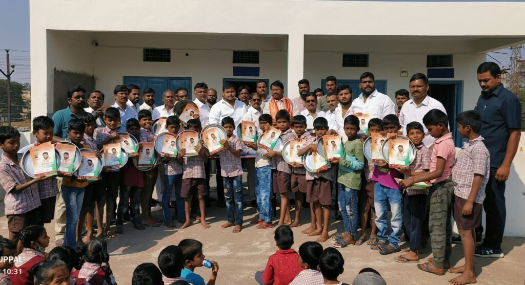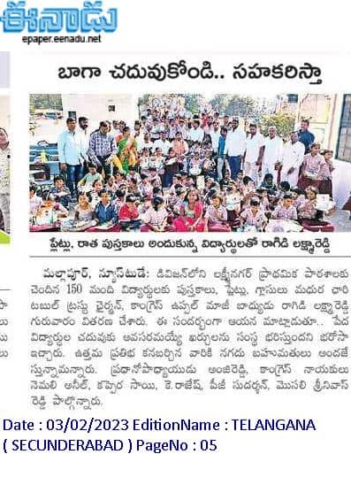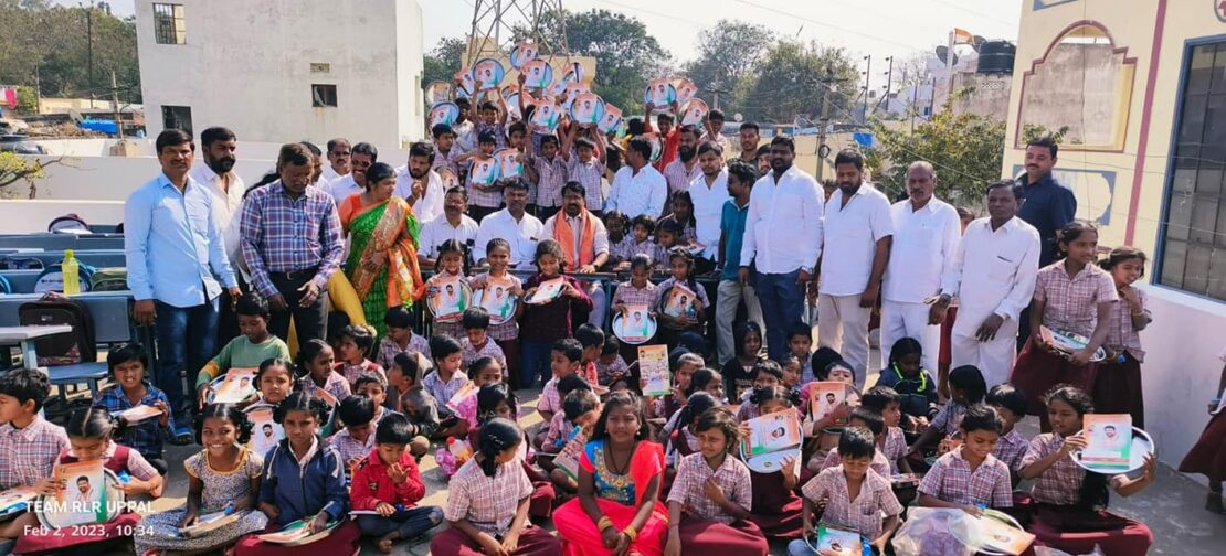 Ragidi Laxma Reddy, Chairman of Madhura Charitable Trust, Uppal Constituency Congress Party Leader, under the auspices of Madhura Charitable Trust, in a government primary school at Lakshmi Nagar, Mallapur Division, Uppal.
